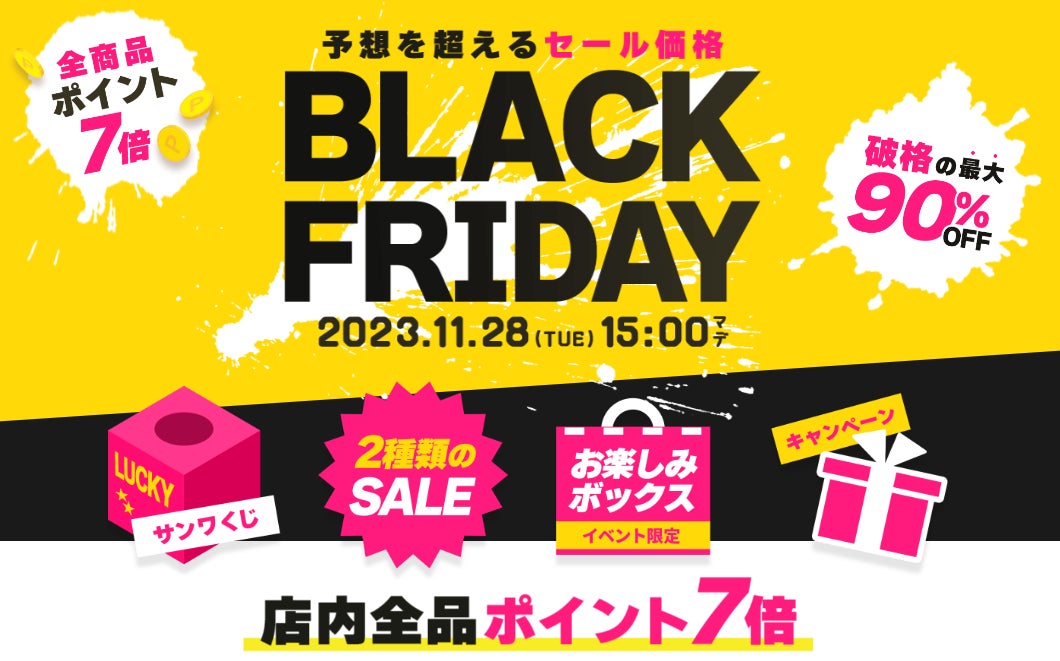 「BLACK FRIDAY」の壮大なイベントが開催中で、今なら全商品が通常の7倍のポイントを獲得できます!