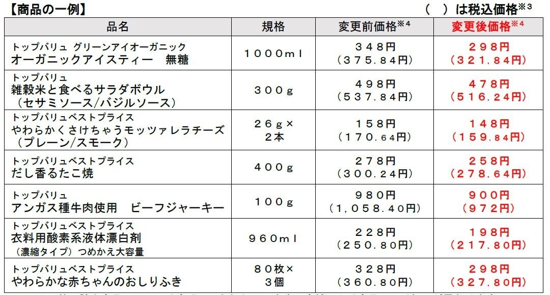 イオンは7月3日(水)から、「イオン」「イオンスタイル」「マックスバリュ」など、全国約10,000店舗で、イオンのプライベートブランド「トップバリュ」32品目※1を値下げします。昨年から価格改定した品目は、累計で120品目となります。