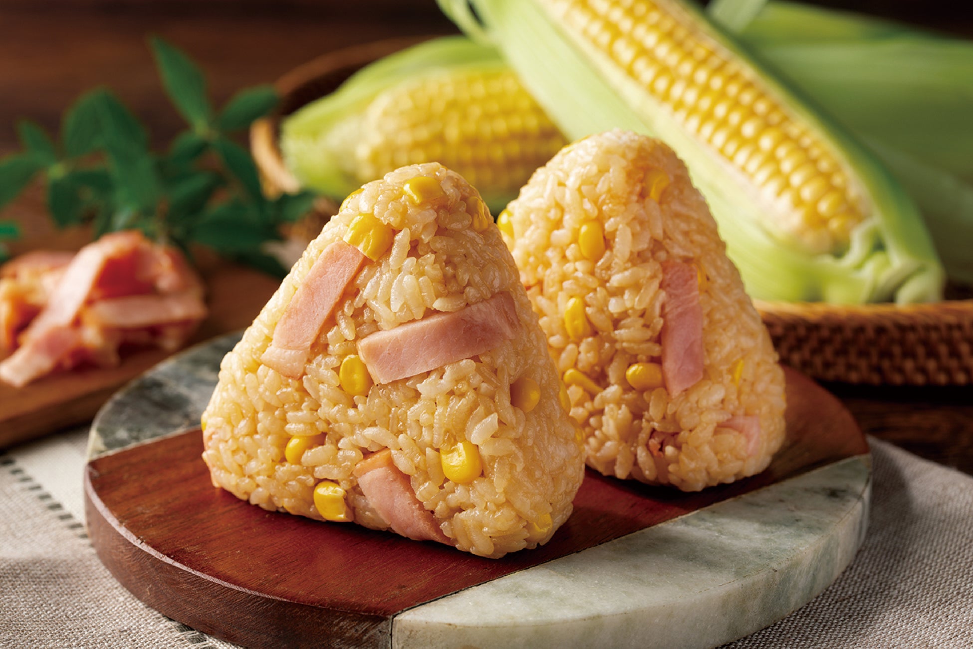 また、「とうもろこし」は北海道産を使用。一般的なスイートコーンに比べて甘味が強く、皮が薄く柔らかい実で、シャキッとした食感を楽しむことができます。「生」でも食べられるほど甘いとうもろこしは、塩気のある風味豊かなベーコンと相性抜群です。ベーコンの塩気に、とうもろこしの甘さを引き立てるバター醤油の香りで「焼きとうもろこしの風味」をイメージしたおにぎりは、主食としても、夏休みのお子さまのおやつとしても、ぴったりです。