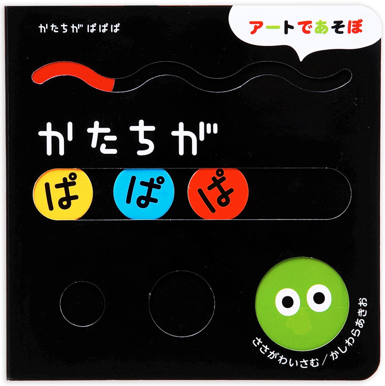 『かたちがぱぱぱ』の絵は、『しましまぐるぐる』シリーズの絵を手掛けるかしわらあきおさん。コントラストの高い配色のおしゃれなデザインが魅力です。