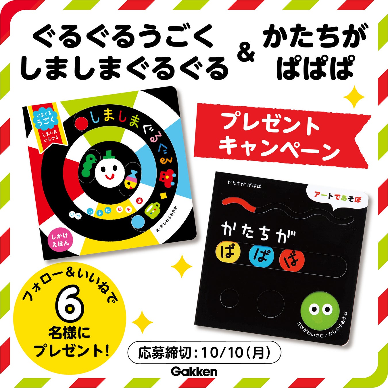 株式会社 学研ホールディングス(東京・品川/代表取締役社長:宮原博昭)のグループ会社、株式会社 学研プラス(東京・品川/代表取締役社長兼COO:南條達也)は、2022年9月30日(金)より、しかけ絵本『かたちがぱぱぱ』『ぐるぐるうごくしましまぐるぐる』のプレゼントキャンペーンを開催します。