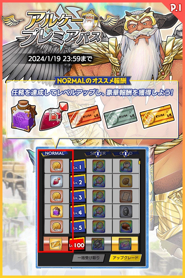 パスのレベルを上げることで、豪華報酬がGETできる「アルケープレミアパス」が登場!