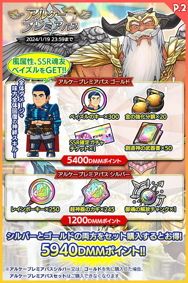 「GOLD」では新SSR魂友、風属性の「ベイズル」とその限界突破キー、SSR確定ガチャチケットなど豪華アイテムが入手できます。