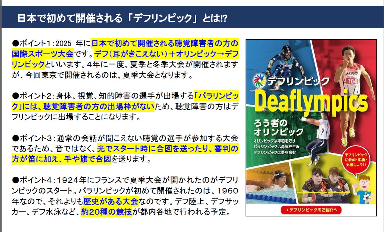 れていますが、そのデフリンピックに皆さんも夢を持って挑戦していただきたいと思っています。