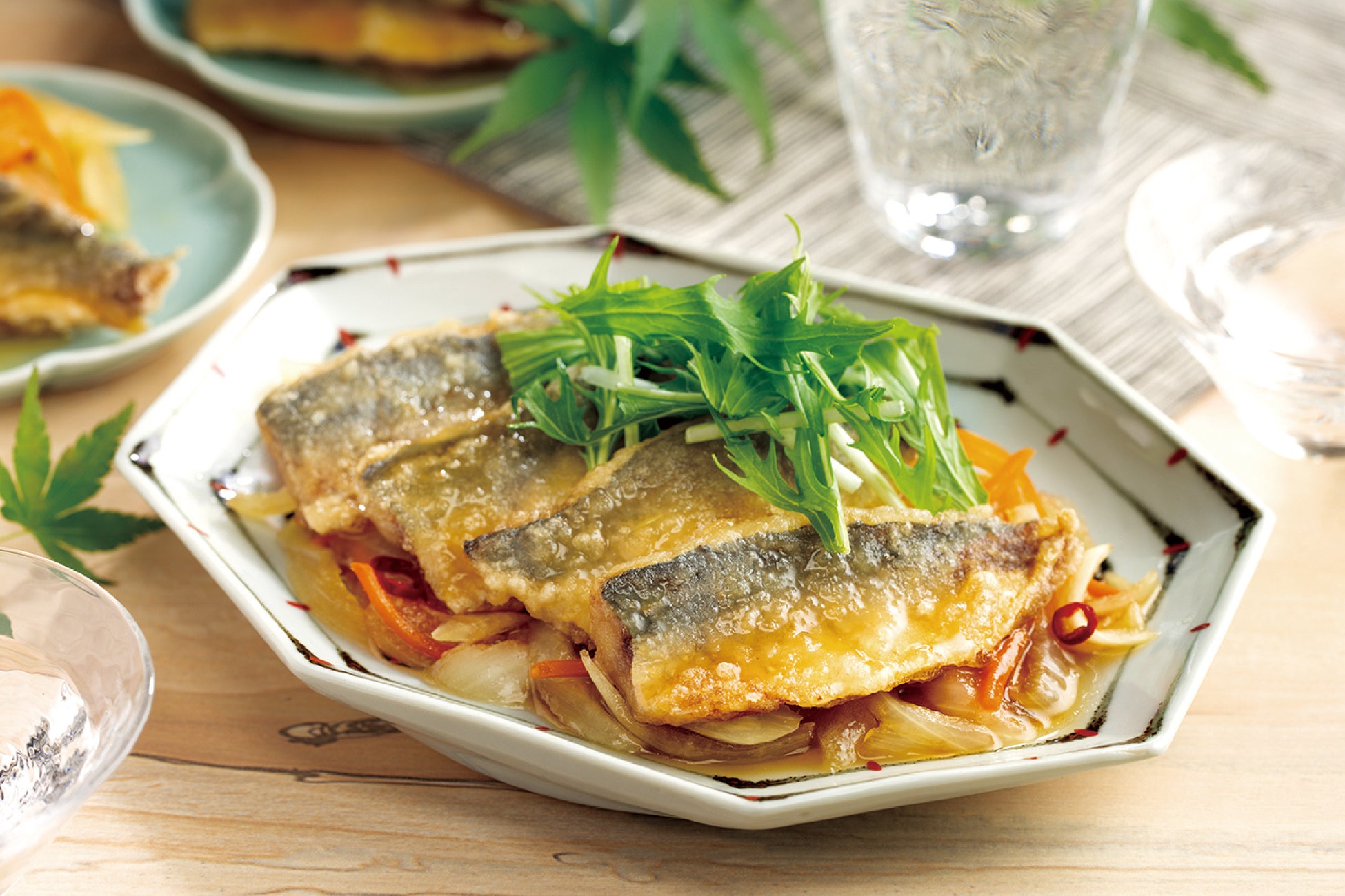 夏にぴったりの爽やかな甘さと優しい酸味に仕立てました。青魚の真アジを主役に、野菜もたっぷりと摂れるこのメニューで、夏の食卓を彩ってください。
