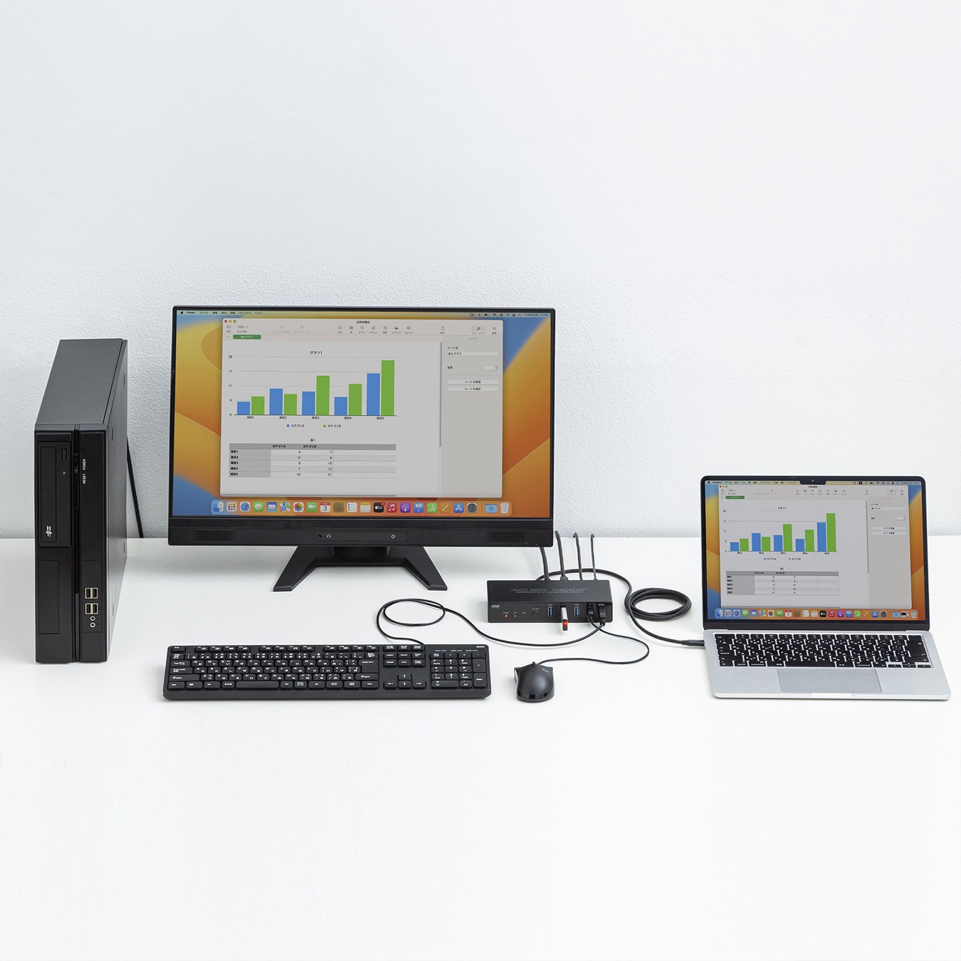 複数の周辺機器をパソコン2台で切り替えできる、ドッキングステーション+パソコン切替器を発売