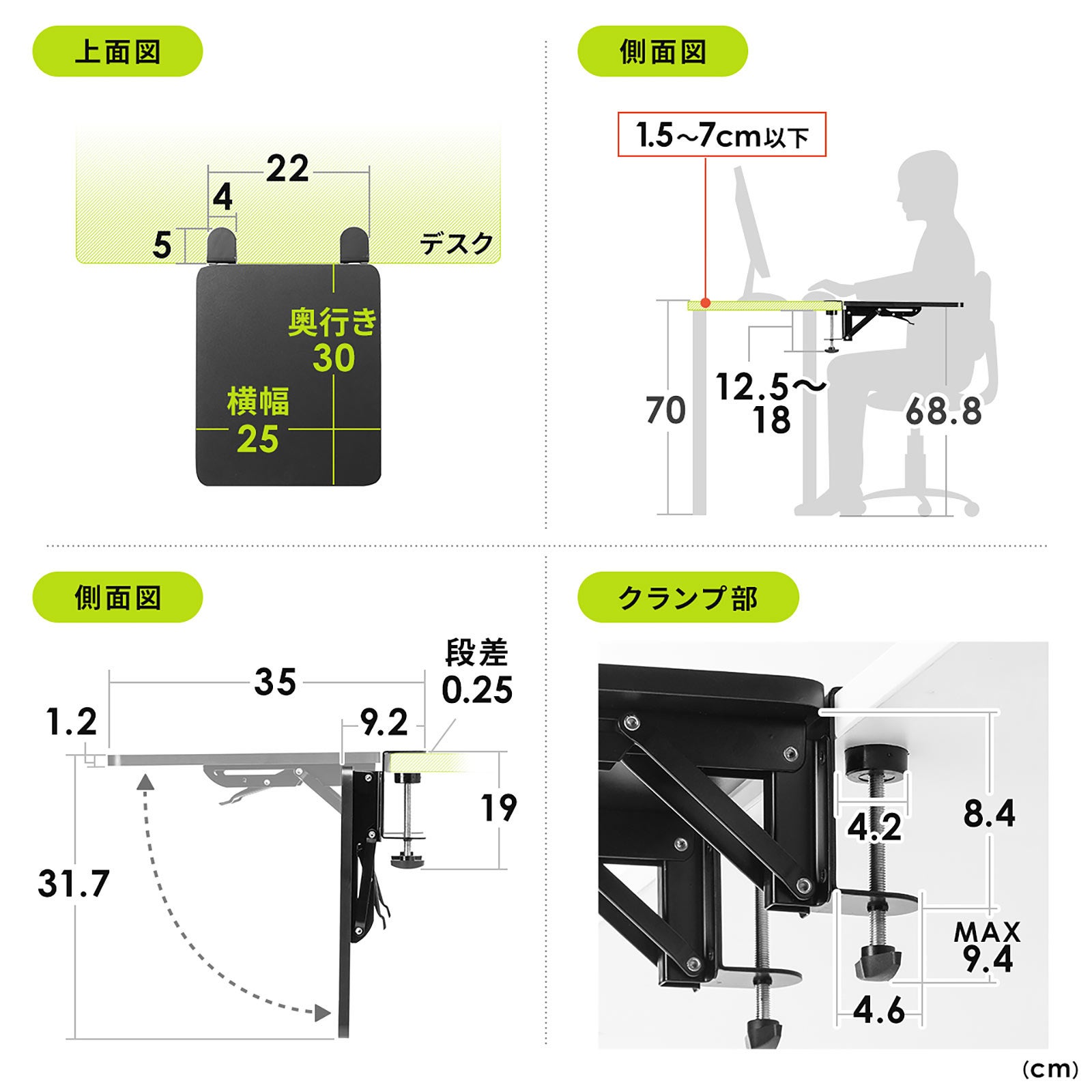 デスクエクステンダー 机 天板拡張 後付 折りたたみ 机拡張 テーブル拡張 クランプ固定 アームレスト 幅25cm 奥行30cm