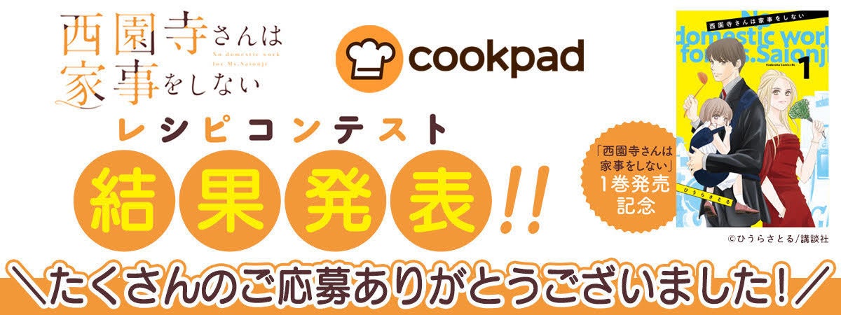 『ホタルノヒカリ』の著者・ひうらさとる最新作、月刊コミック誌「BE・LOVE」(講談社)にて大好評連載中の『西園寺さんは家事をしない』とクックパッドがコラボし、「手軽に作って元気になれる、ラクうまスタミナレシピ」というテーマで、レシピコンテストを開催!