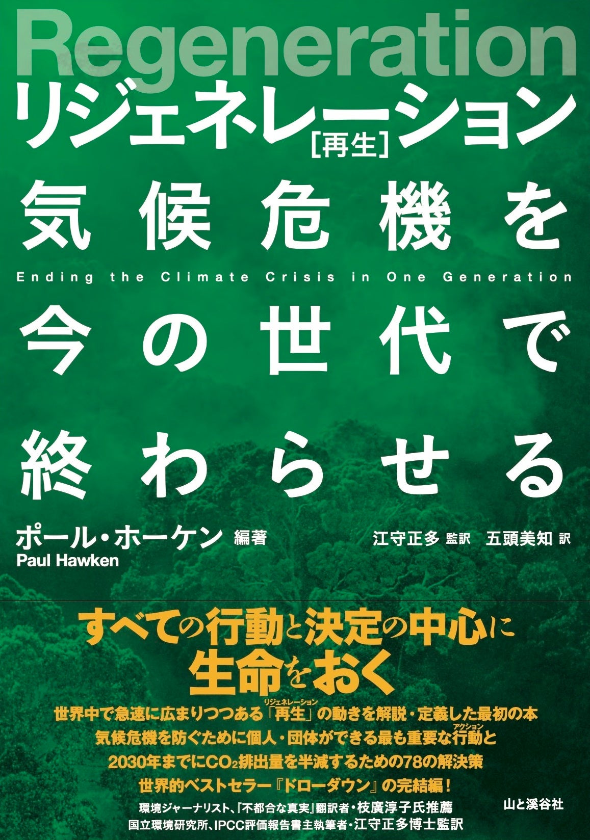 昨年12月に発売し、NHKスペシャル他、各メディアにも大きく取り上げられベストセラーとなった『ドローダウン 地球温暖化を逆転させる100の方法』の続編で、より包括的に、社会の多くの課題と気候危機がどう関わるかを「リジェネレーション(再生)」というキーワードで説く、今最も必要とされる提言の書です。