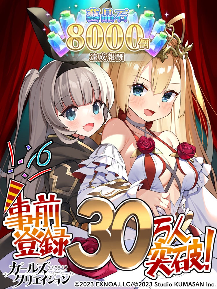 皆さまのおかげで事前登録者数30万人を達成いたしましたのでガチャ26回分の「藝晶石」8,000個をプレゼント中です。報酬はゲーム開始後全員が受け取れるので必ずゲットしてください!