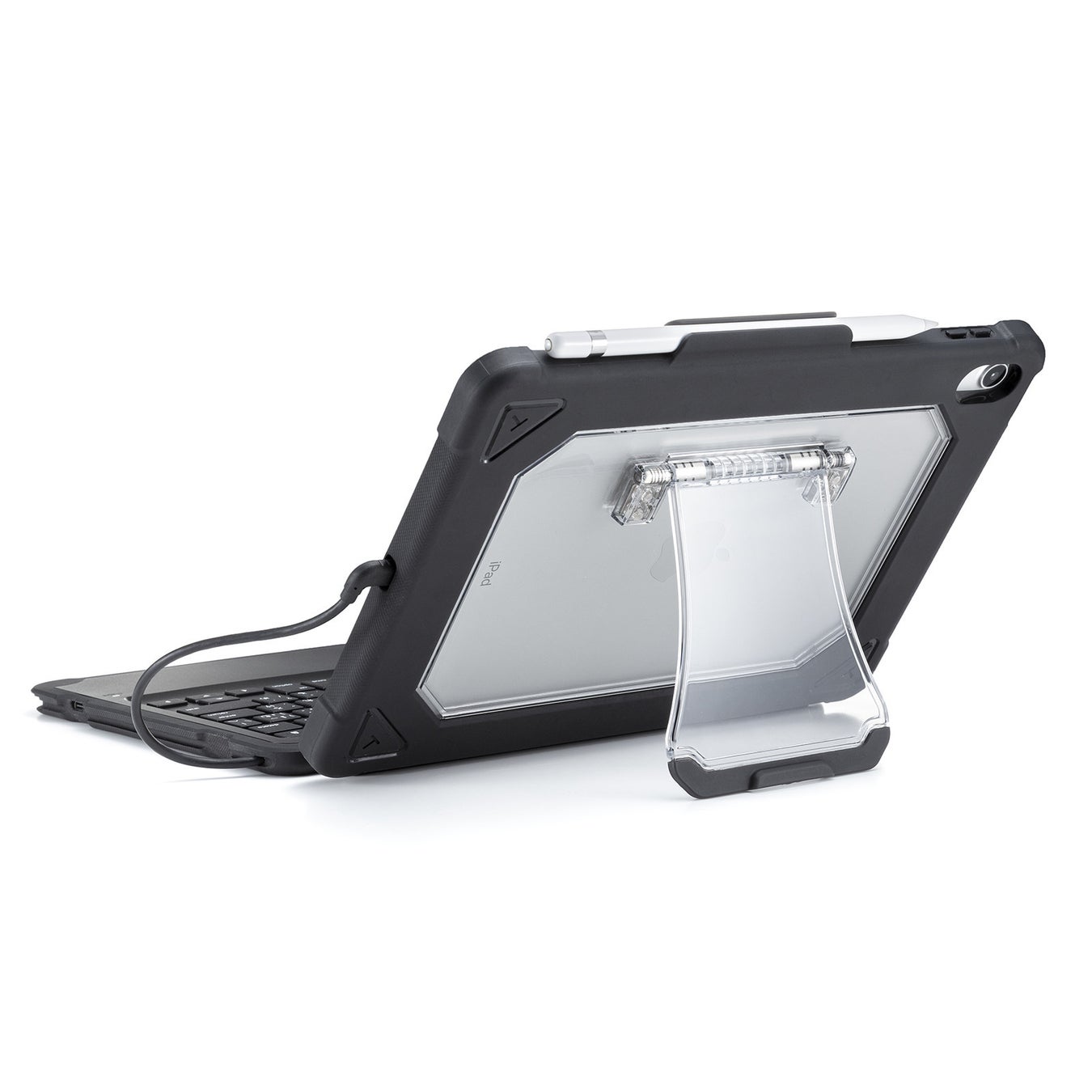 フチの部分に耐衝撃素材を使用した、落下しても壊れにくい構造です。大切なiPadを守ります。