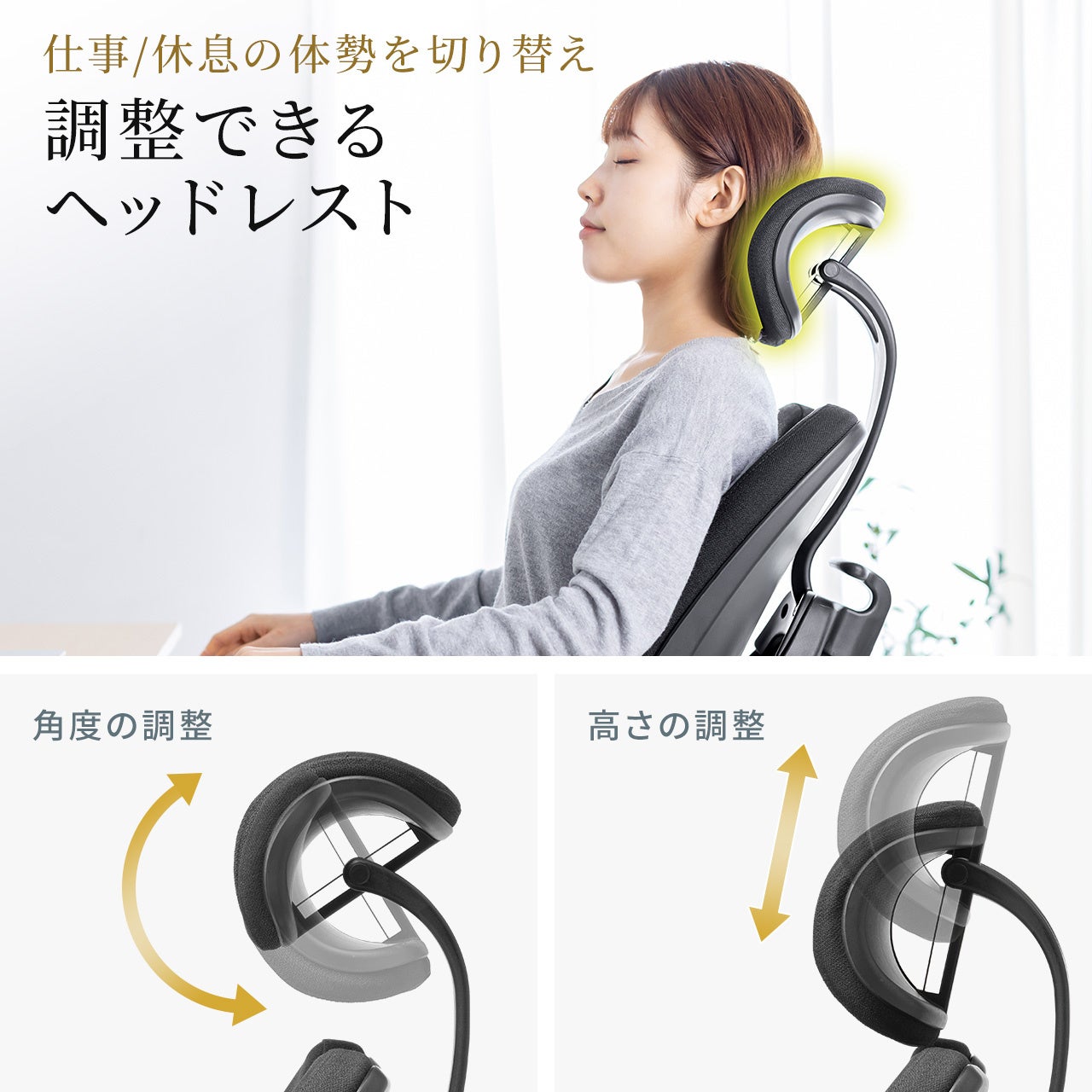 お好みの角度で使用することができます。高さと角度を変更することができるヘッドレストを装備しています。