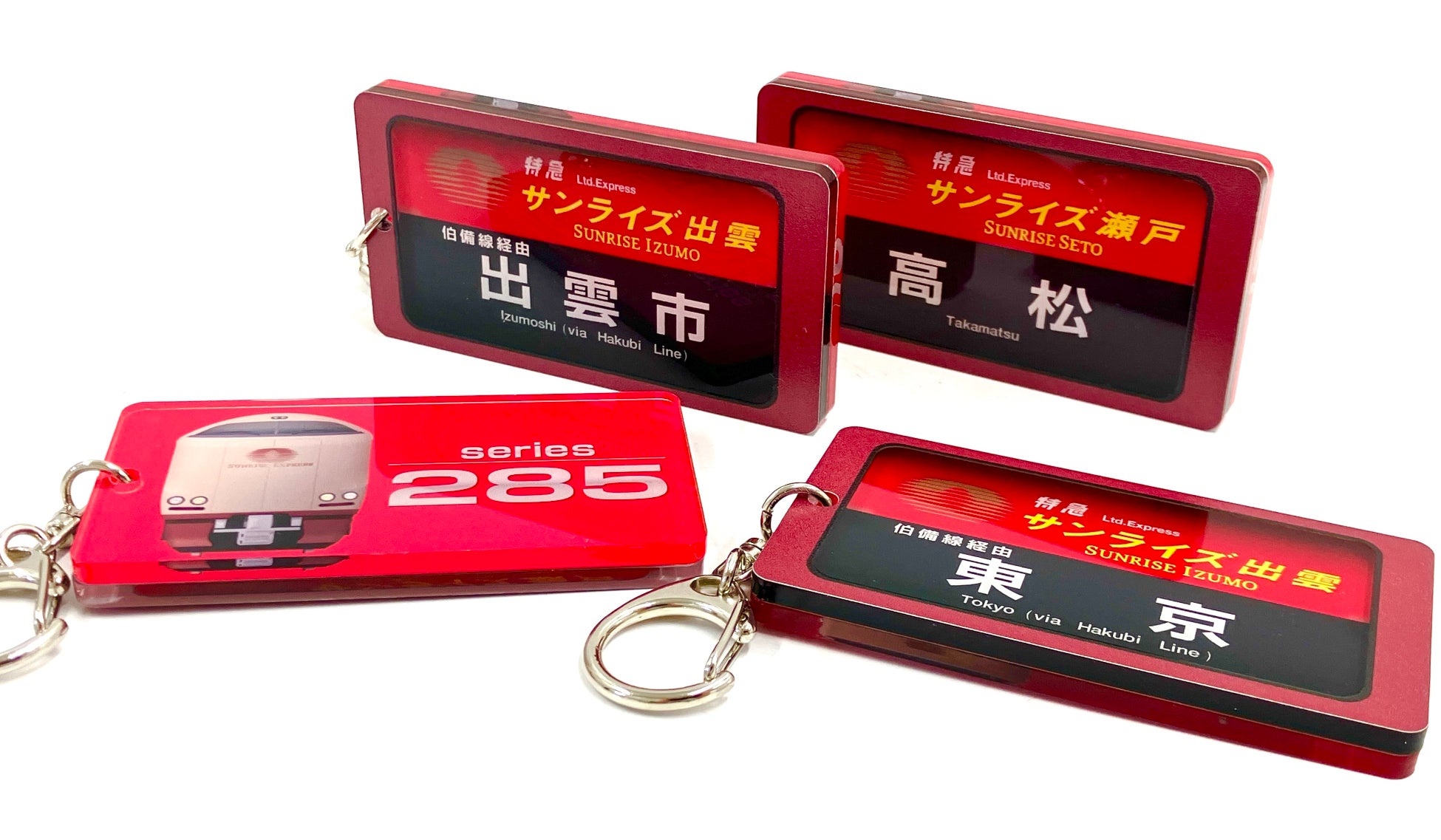 今回発売となるグッズは、そんな魅力たっぷりな285系サンライズエクスプレスの車両や方向幕をデザインにしたアイテムとなっております。