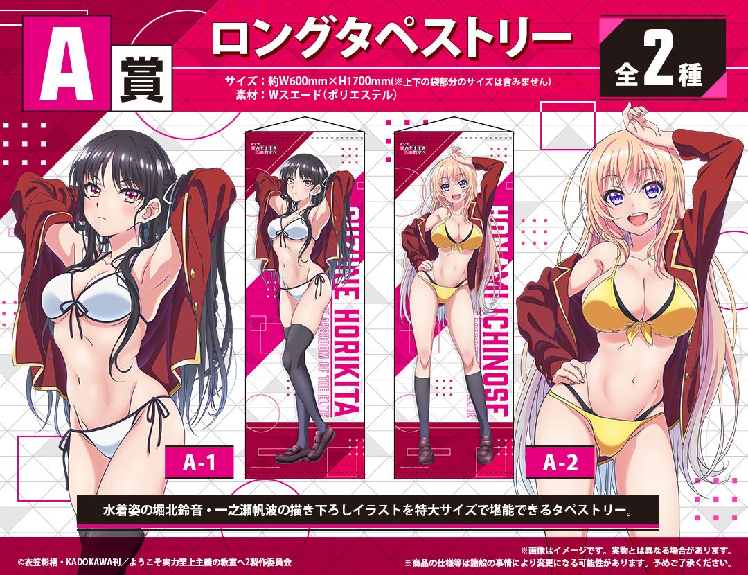 描き下ろしイラストの堀北鈴音・一之瀬帆波グッズが当たる!『ようこそ実力至上主義の教室へ』オンラインくじ