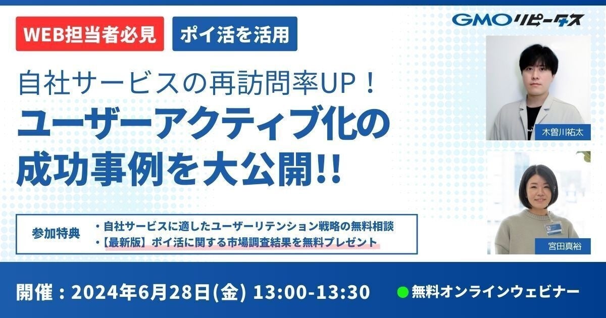 アクティブユーザー増加施策に悩む担当者必見!ポイントCRMの「GMOリピータス」が無料ウェビナーを開催【GMOメディア】