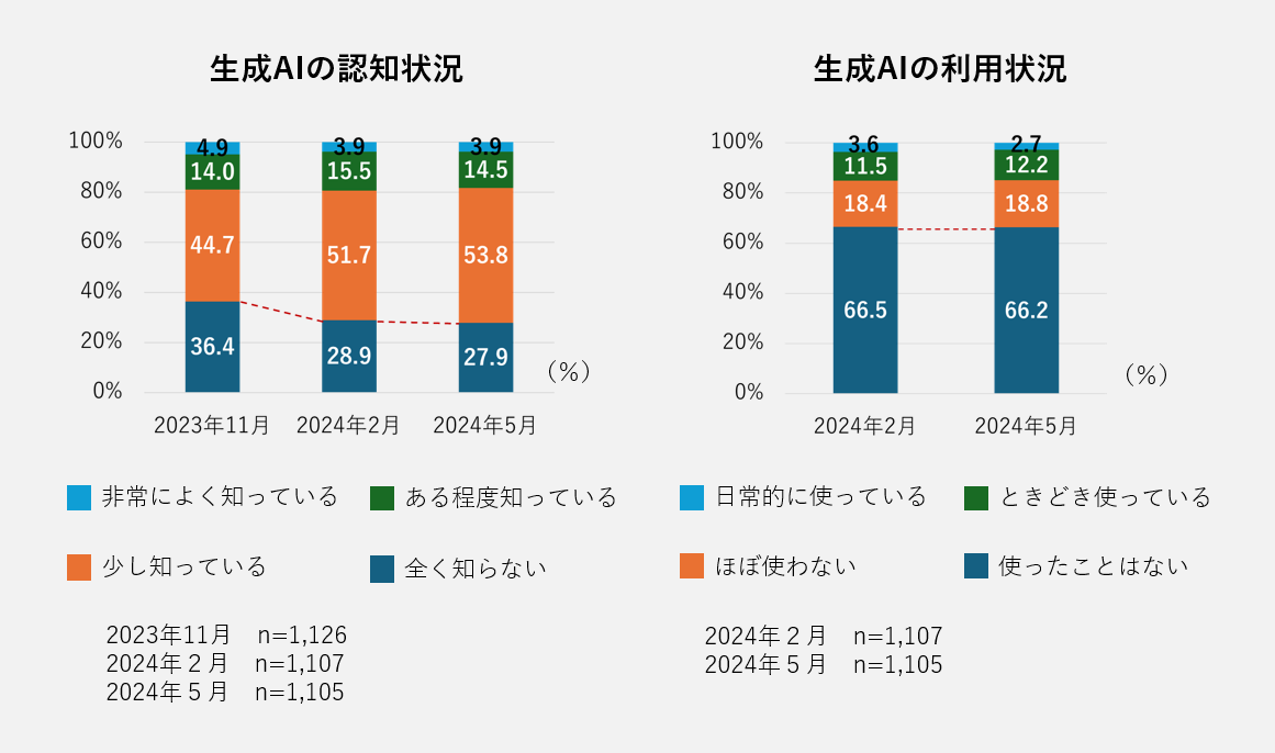 ■生成AIの認知と利用状況(2023年11月~2024年5月の比較)