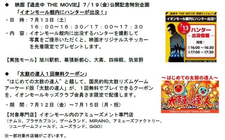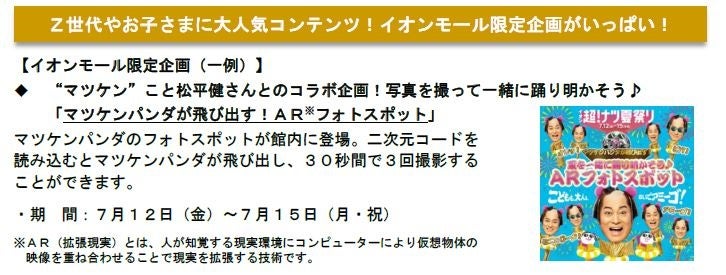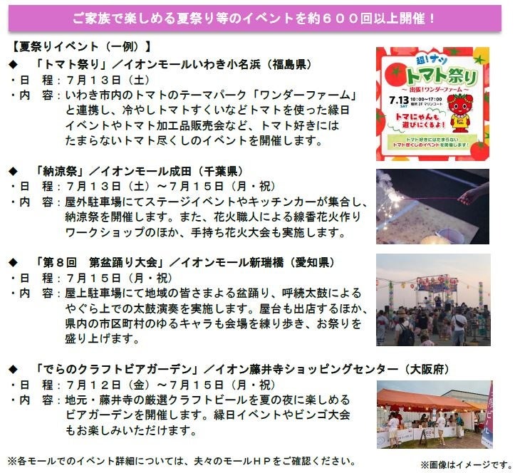 ※2:イオンモールのイベントは7月12日(金)~7月15日(月・祝)の4日間の開催となります。