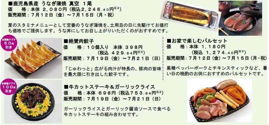 3つの商品を組み合わせて10~25万円でお得に購入できる「松竹梅プレミアムセット」企画を初めて実施するほか、夏のスポーツ観戦に最適なテレビや、ごちそう需要に対応した国産黒毛和牛大放出企画、家計に嬉しい食品の増量企画など、“今欲しい”様々な需要にお応えし、贅沢需要や家計応援など、夏の消費を後押しするお買得商品をご用意します。
