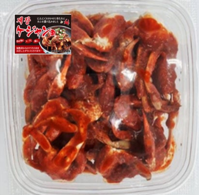 特長:にんにくをきかせた辛たれにカニを漬け込みました。加熱済みのため、そのまま食べられます。
