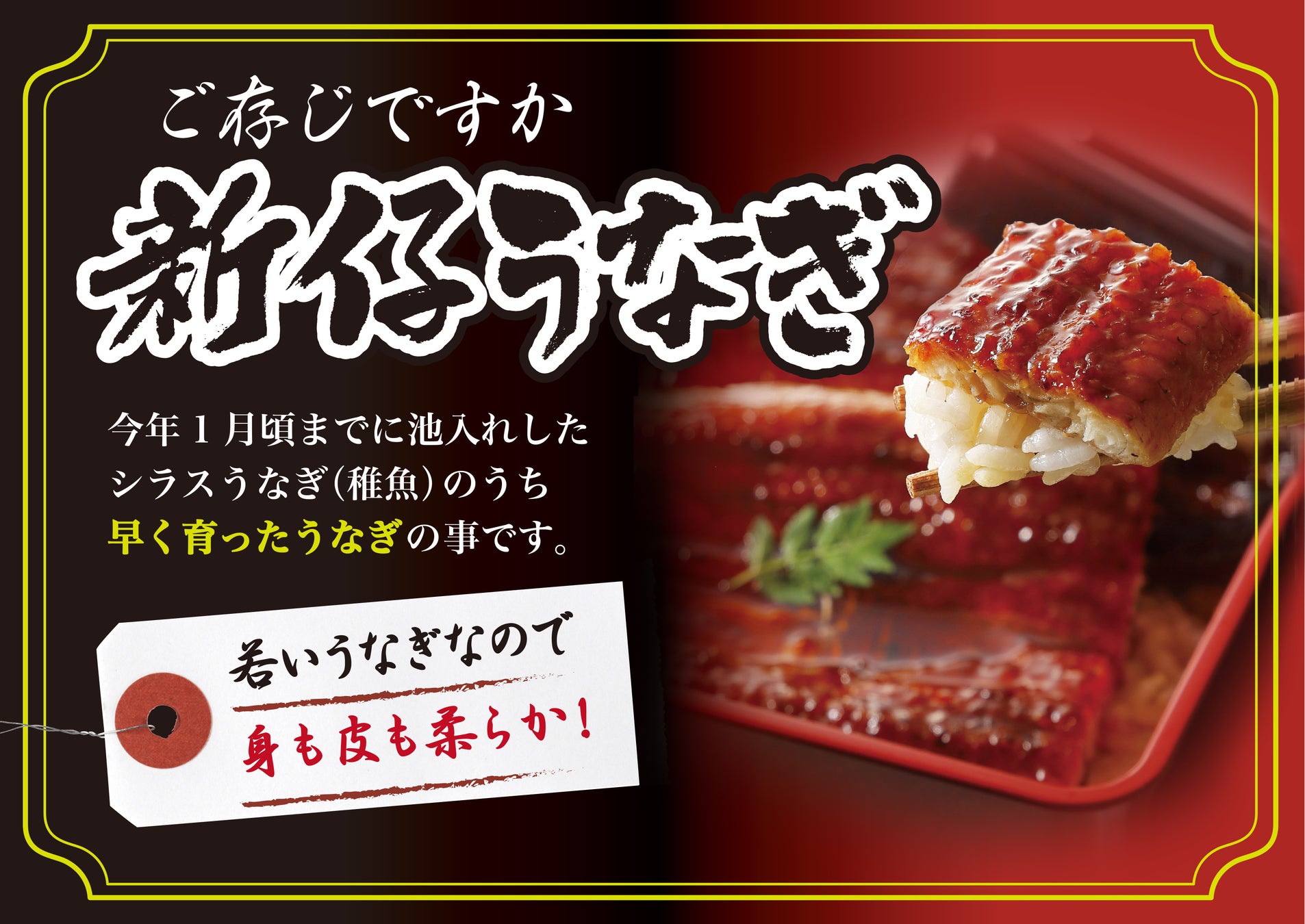 特長:養殖場のうなぎの中でも、1年以内に出荷サイズまで育つ個体は「新仔」うなぎと呼ばれ、身も皮も柔らかい食感で“知る人ぞ知る”逸品と言われています。