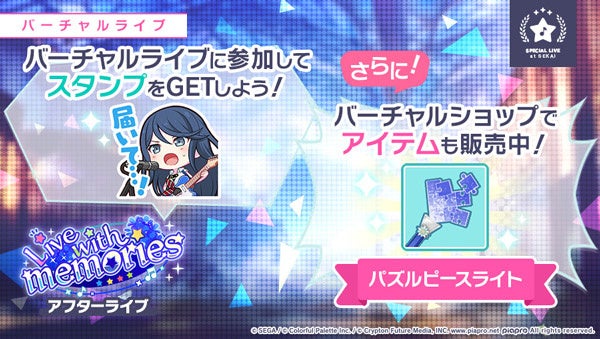 また、「Live with memories アフターライブ」の開催に先立ち、4月21日(木)からバーチャルショップにて、ペンライト「パズルピースライト」を販売中です。