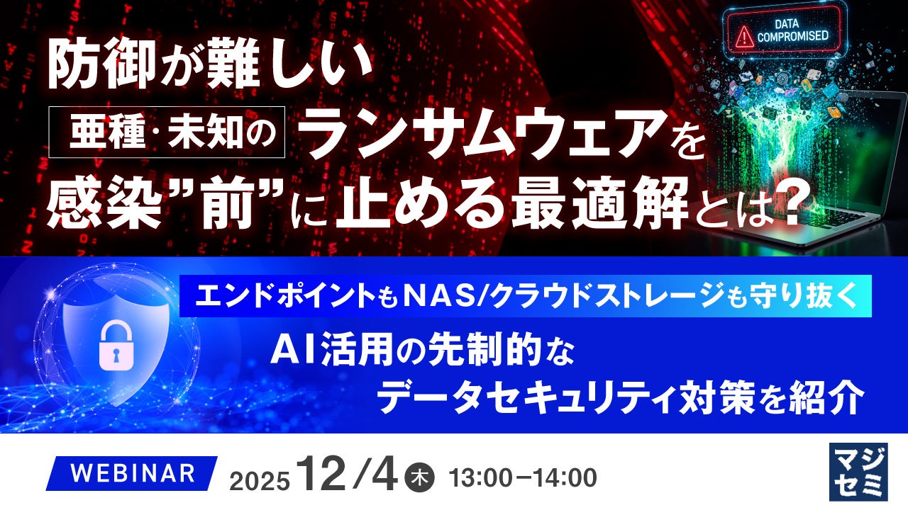 『防御が難しい亜種・未知のランサムウェアを感染”前”に止める最適解とは?』というテーマのウェビナーを開催