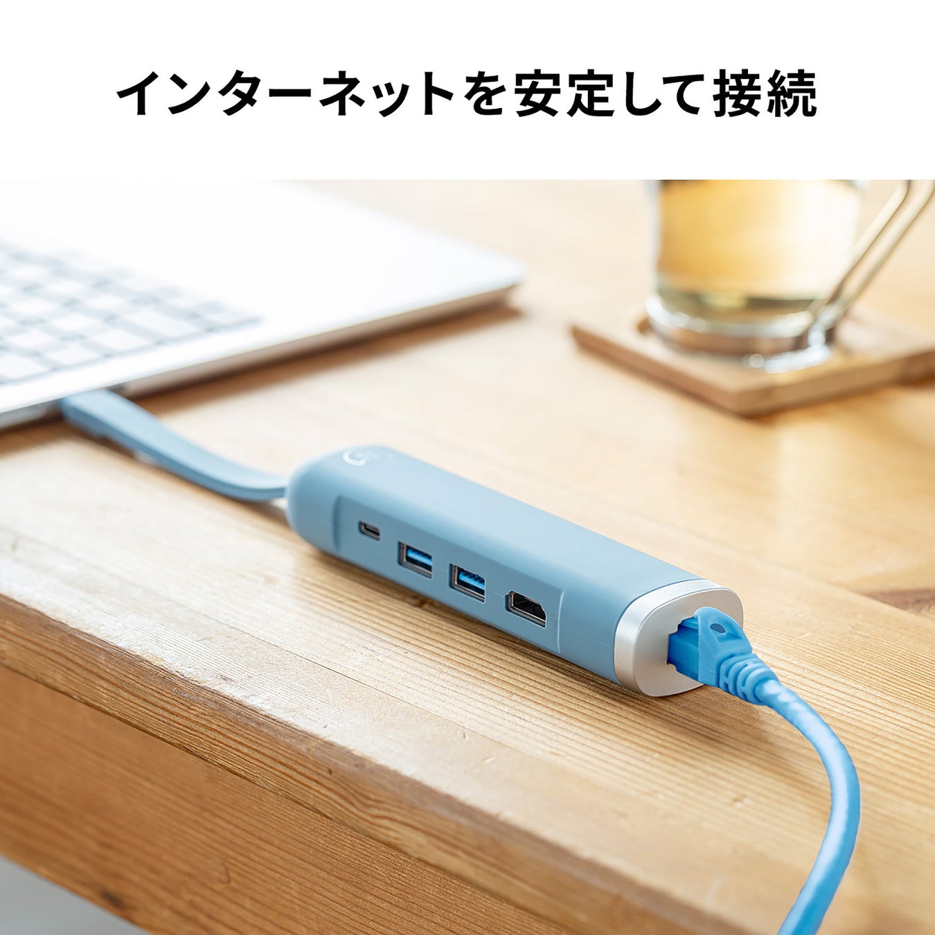 Gigabit Ethernetに対応しているので、Gigabitネットワーク環境にも対応し、Type-Cケーブル1本で有線LAN接続できます。