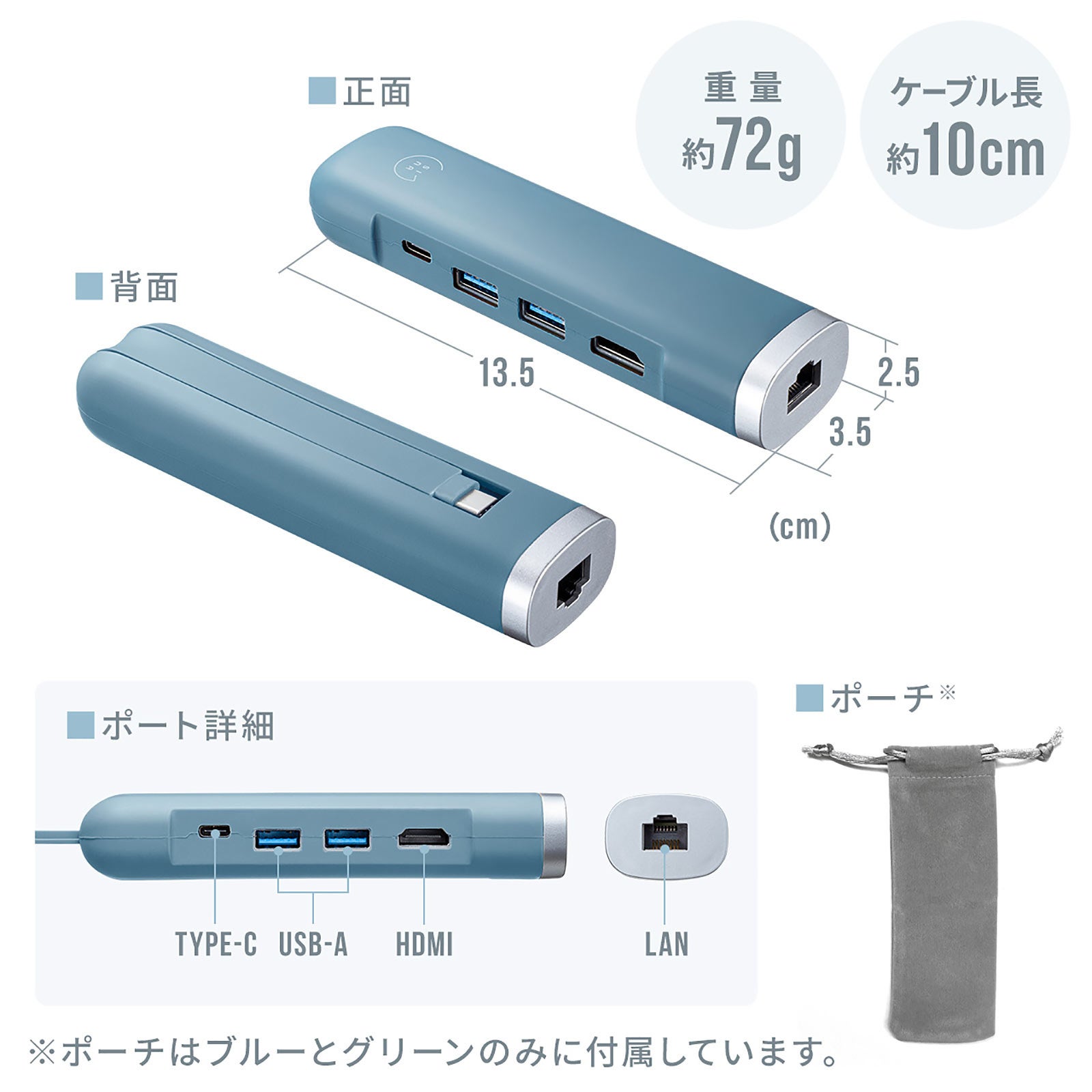 ドッキングステーション USB Type-C HDMI 4K/30Hz PD100W対応 有線LAN対応 ケーブル一体型 モバイル 持ち運び