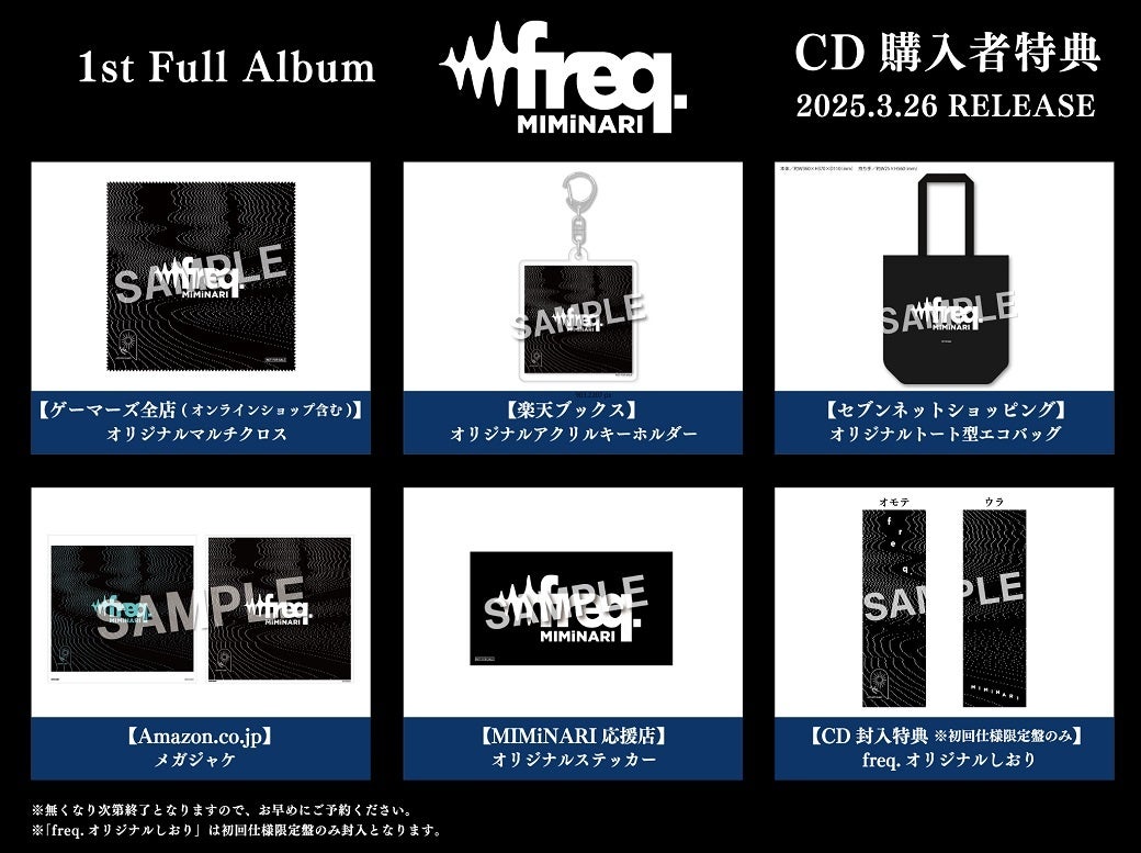 ◆3月26日(水)発売 MIMiNARI 1st Full Album「freq.」法人別購入者特典