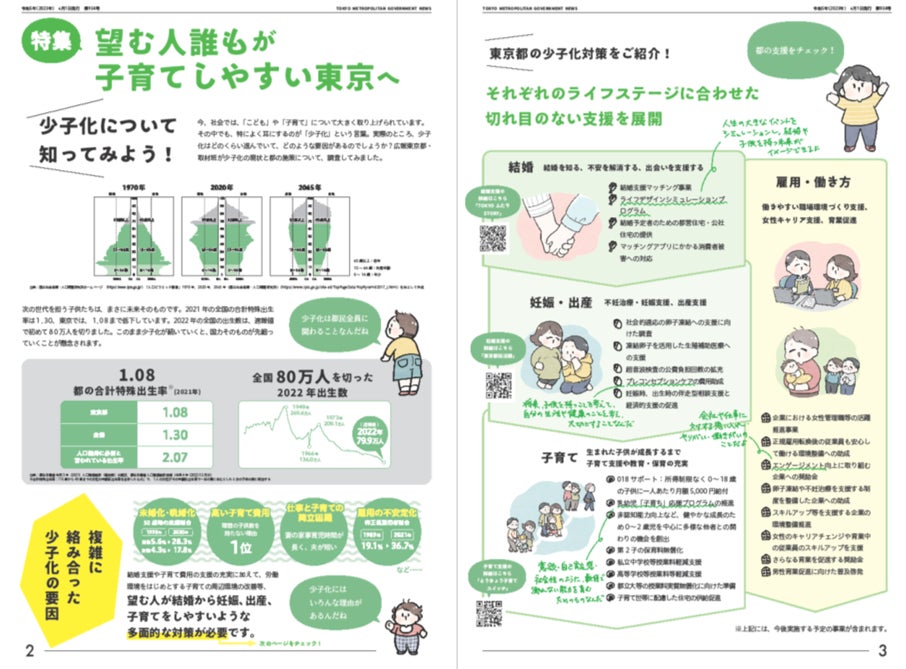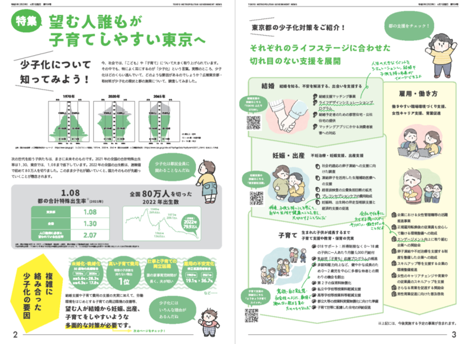 6月号では、社会で大きく取り上げられている「少子化」について、その要因、それに対する東京都の支援策について特集します。