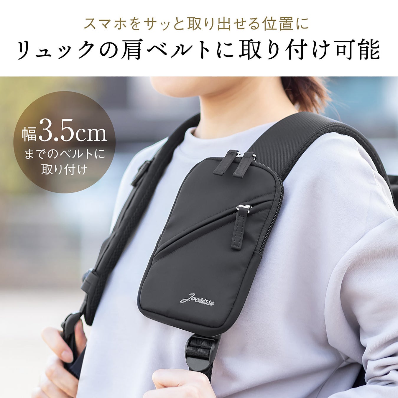 ポーチは、リュックのショルダーベルトに取り付けすることができます。