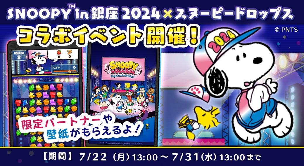 爽快パズルゲーム『スヌーピードロップス』にて、「スヌーピー in 銀座 2024」とのコラボイベントを今年も開催します。
