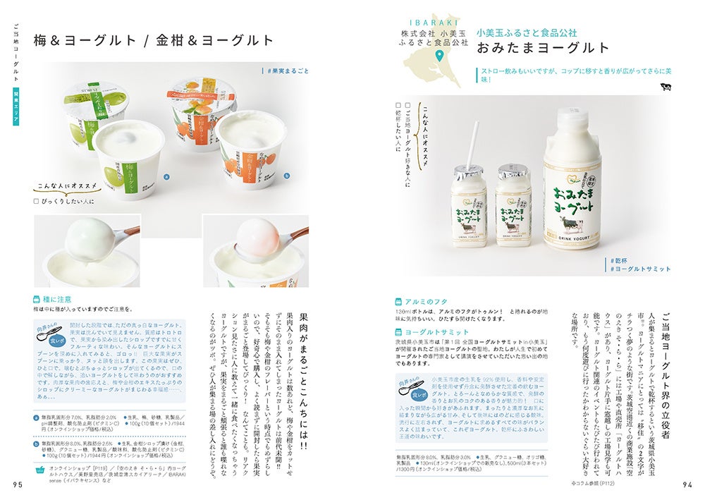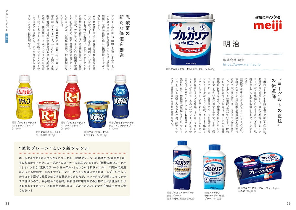 全国的に販売されている大手メーカーのヨーグルトから各地でつくられているご当地ヨーグルト(北海道から九州・沖縄エリア)まで、約300種を紹介しています。