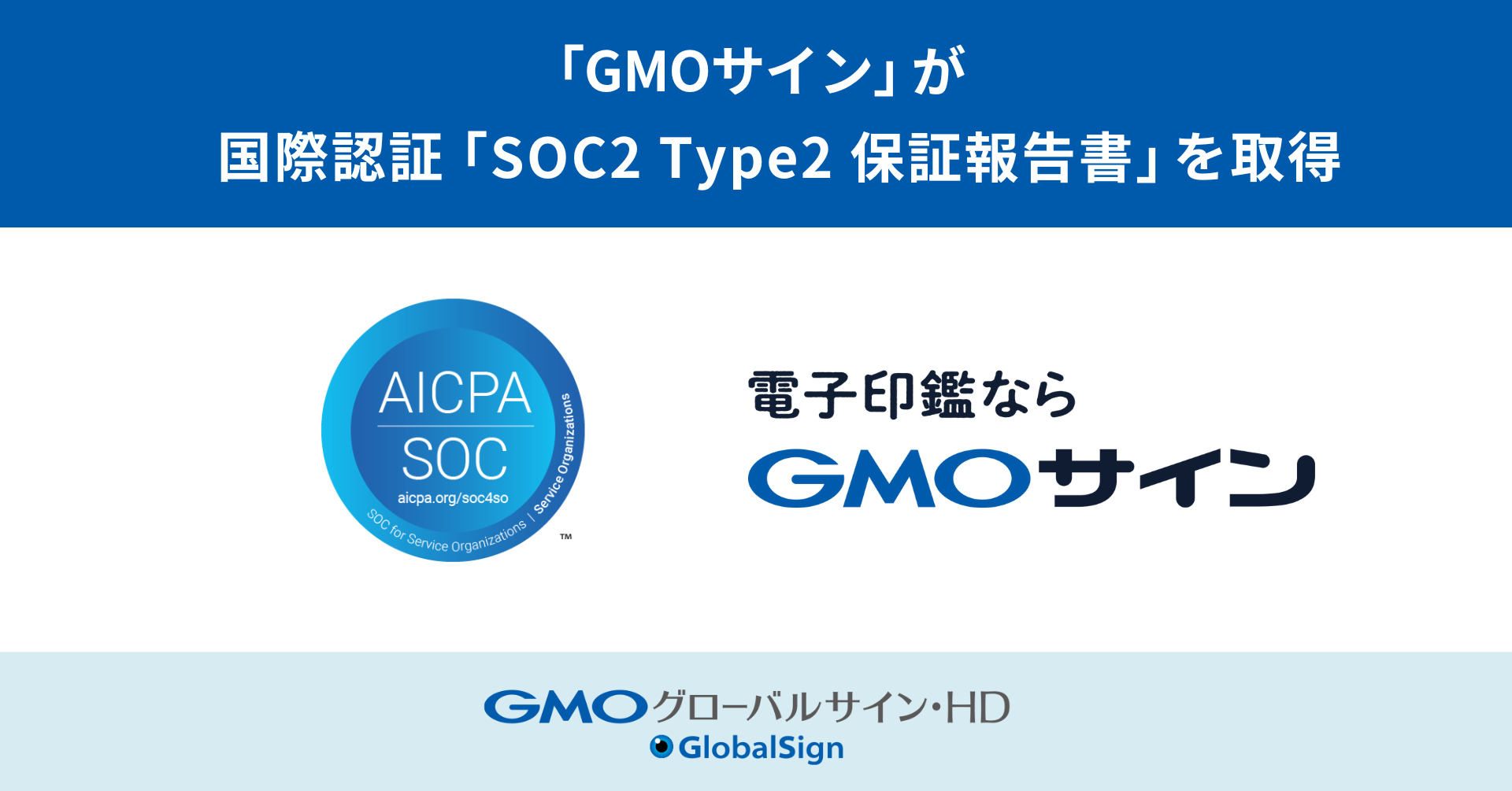 「GMOサイン」が国際認証「SOC2 Type2保証報告書」を取得【GMOグローバルサイン・HD】