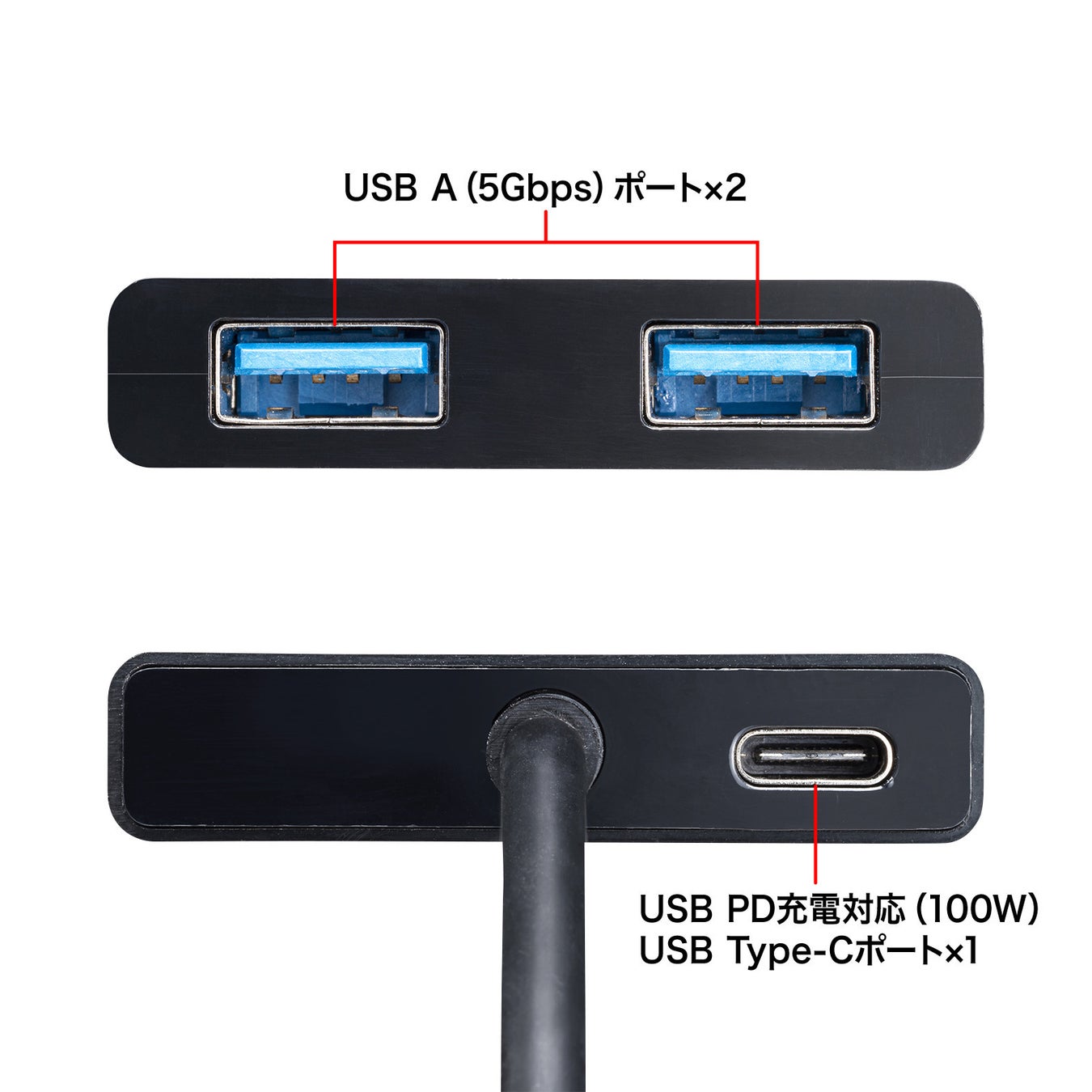 USB Aポートが2個、USB PD充電とデータ転送ができるType-Cポートが1個付いています。