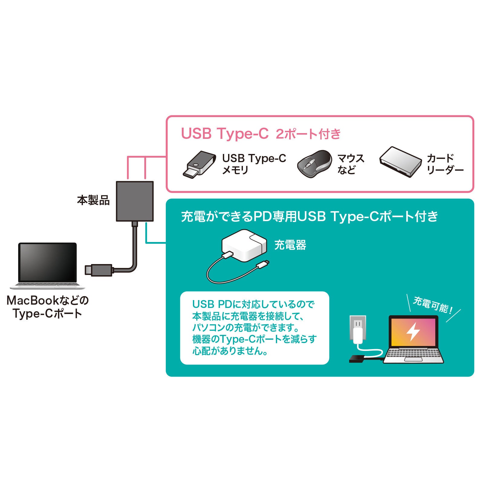 Type-CマウスやType-Cメモリが接続できます。また、USB PD充電専用ポートが付いています。
