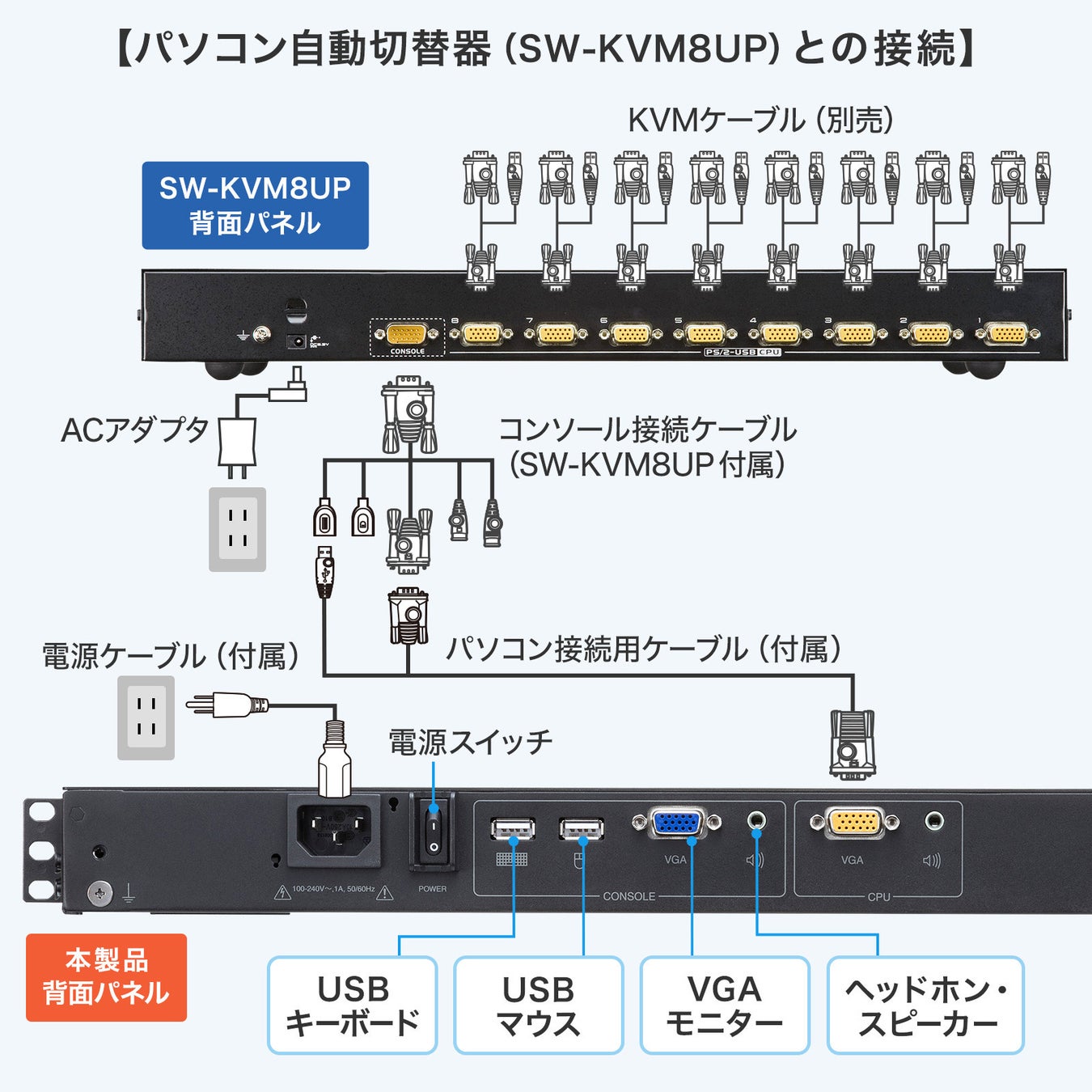 ※パソコン自動切替器を使用せず、本製品とサーバー1台のみを直接接続して使用することもできます。