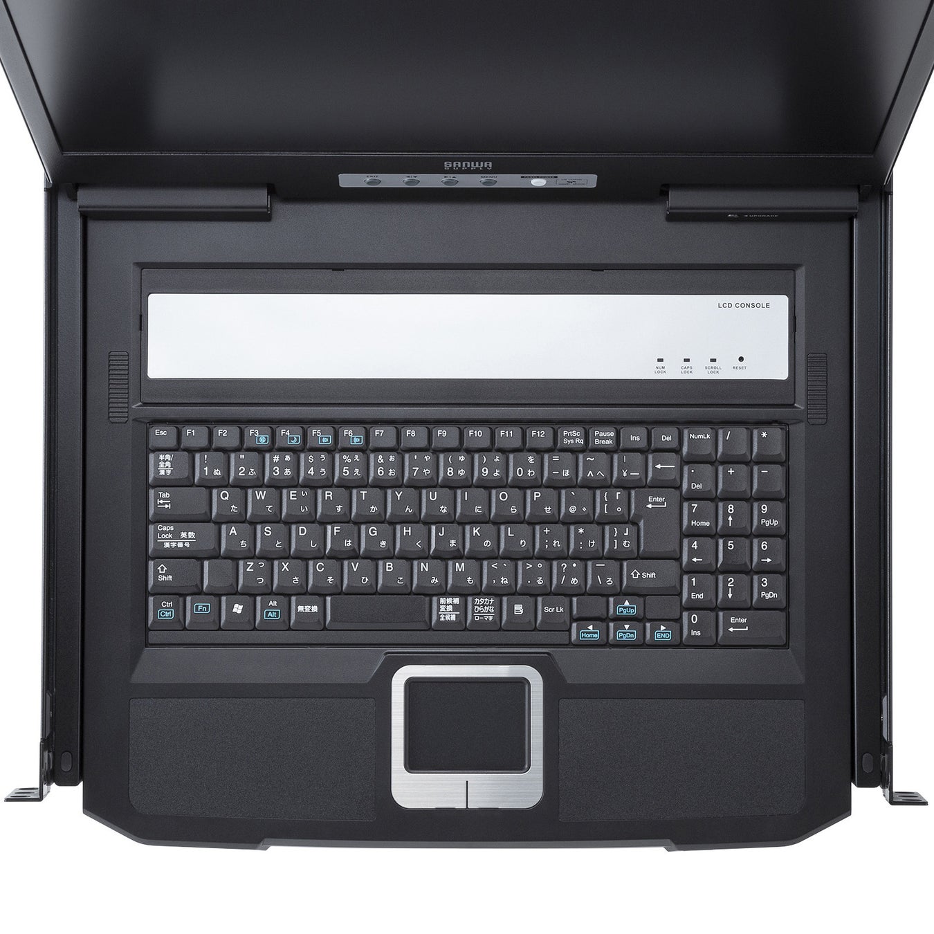 18.5インチワイド画面の液晶モニタとタッチパッド付きキーボードが一体化した、サーバーラックに収納できるLCDコンソールドロワーです。