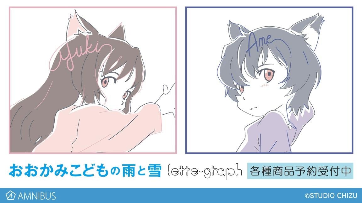 『おおかみこどもの雨と雪』の雨と雪 lette-graph Tシャツ、パーカー、マグカップなどの受注を開始!!アニメ・漫画のオリジナルグッズを販売する「AMNIBUS」にて