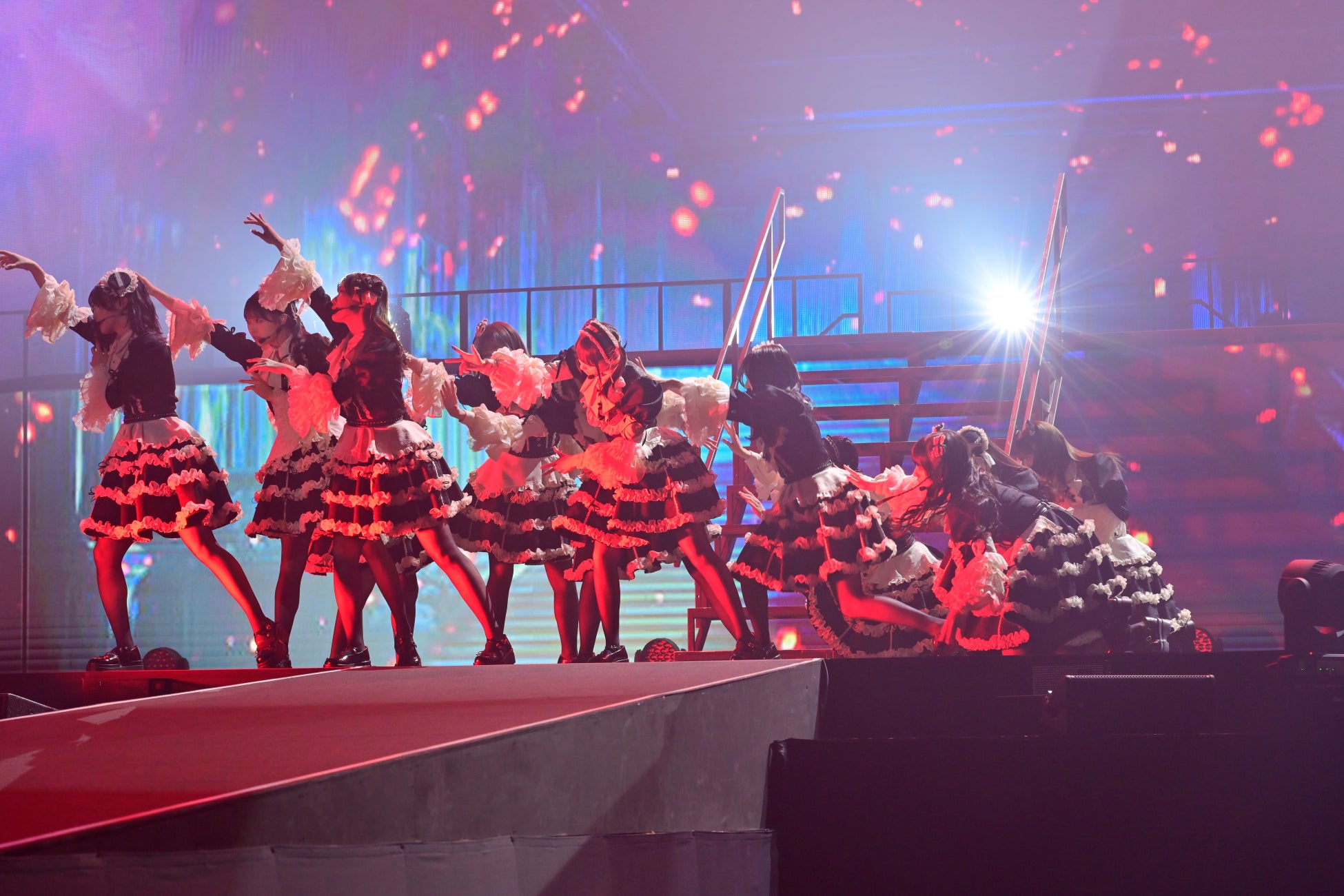幕間映像を挟み、≒JOYはキュートな衣装にチェンジ。=LOVE『届いてLOVE YOU♡』『しゅきぴ』、≠ME『マシュマロフロート』といった先輩グループの甘いラブソングを、時にラブリーなセリフを交えながらパフォーマンスしていく。『夢見る♡アイドル』ではポムポムプリンがステージに登場し、メンバーと息の合ったダンスを披露。多くの観客がその愛らしい光景に心を奪われた。
