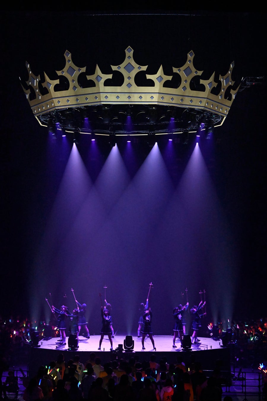 結成3周年を記念して行われた今回の公演では「HOTEL GRAND TIARA」を舞台にストーリーが進行し、ホテルのパーティに招待されたメンバーが次々に与えられる指令に沿って多彩なパフォーマンスを繰り広げた。コンサートの冒頭では開演前のアナウンスを受けて観客がペンライトの灯りを消し、場内が暗闇に包まれる。そして懐中電灯を手にしたメイド服姿の≒JOYがアリーナの客席通路に登場し、観客の至近距離でロックナンバー『超孤独ライオン』を勇ましく歌唱すると、会場全体に興奮が広がった。