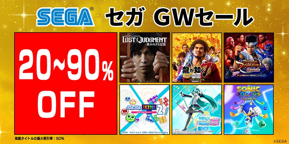 株式会社セガは、PlayStation™Storeおよびニンテンドーeショップにて販売中の一部PlayStation®5/PlayStation®4/Nintendo Switch™/ニンテンドー3DS用タイトルを対象とし、期間限定で特別価格にて販売する「セガ GWセール」を開催中です。