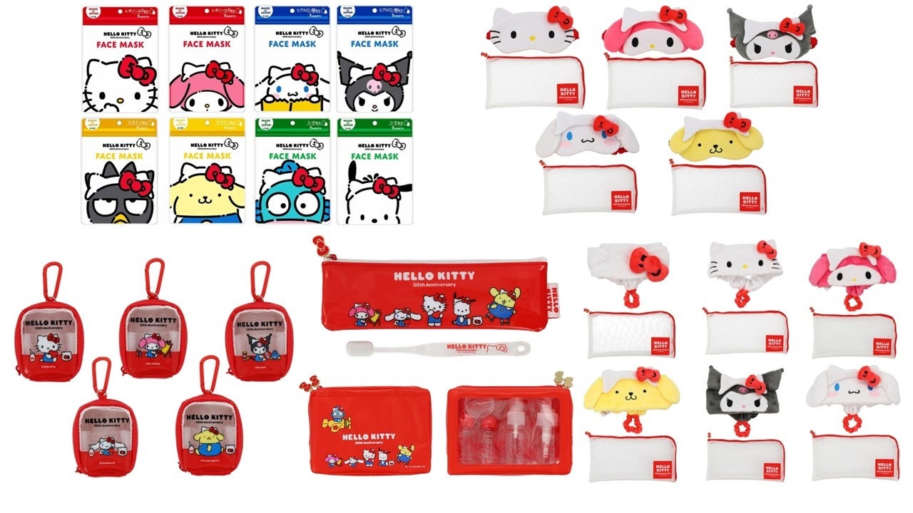 こうしたなか当社は、これからの時期の夏休みやお盆休みなどのおでかけ先でもいつでも「ハローキティ」と一緒にいられるような商品を全26品目発売します。商品はハローキティの50周年を記念したデザインで、マイメロディやクロミ、シナモロール、ポムポムプリンなどサンリオの人気キャラクター達も一緒にデザインされている限定品となっています。