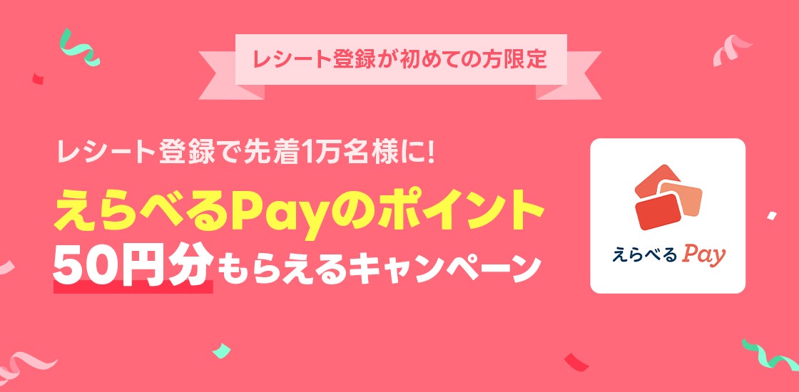 このたび、「初めての方限定!レシート登録でえらべるPayのポイントがもらえる!キャンペーン」を開始します。