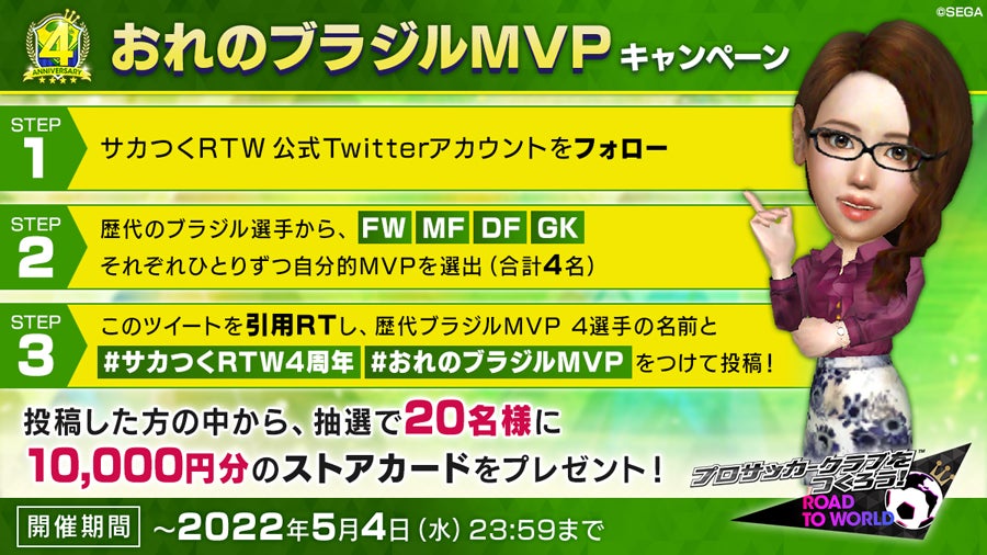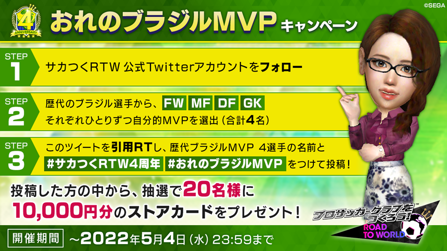 ◆「サカつくRTW」4周年記念Twitterキャンペーン開催中!