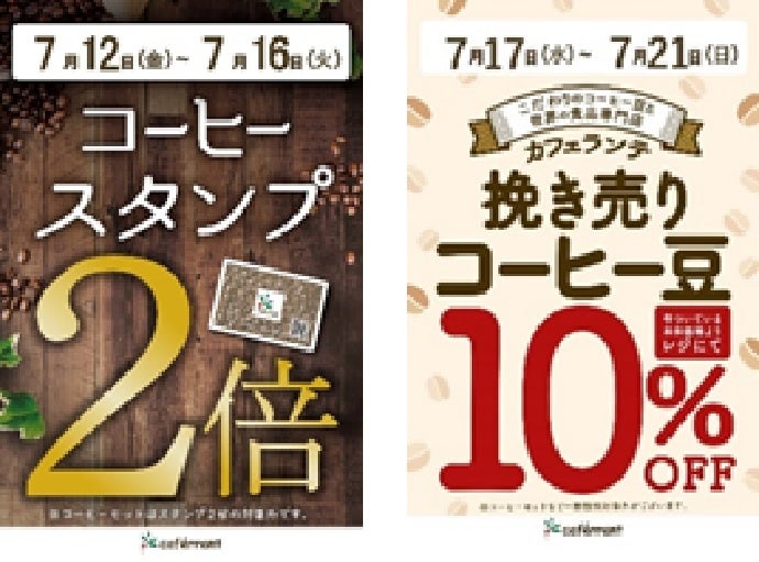 また、世界的な需要の高まりや円安の影響などでコーヒー豆の価格が高騰していることから、期間中「コーヒースタンプ2倍」や「挽き売りコーピー豆10%OFF」など、おトクに買物をしていただける企画を用意します。