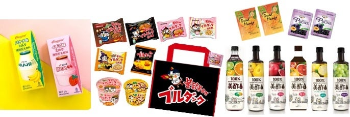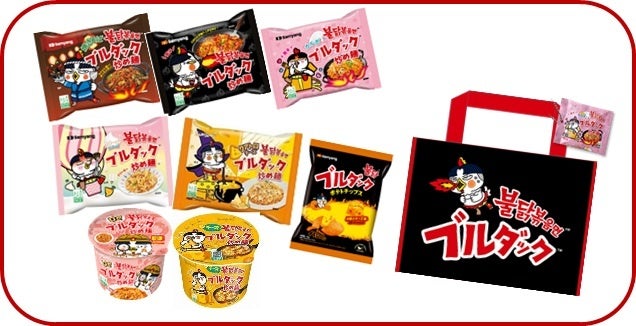 専用トートバッグに袋麺5品+カップ麺2品+スナック菓子1点が入ったオリジナルセットに、さらに、ノベルティ(キーチャーム)を加えた数量限定のおトクなセットです。