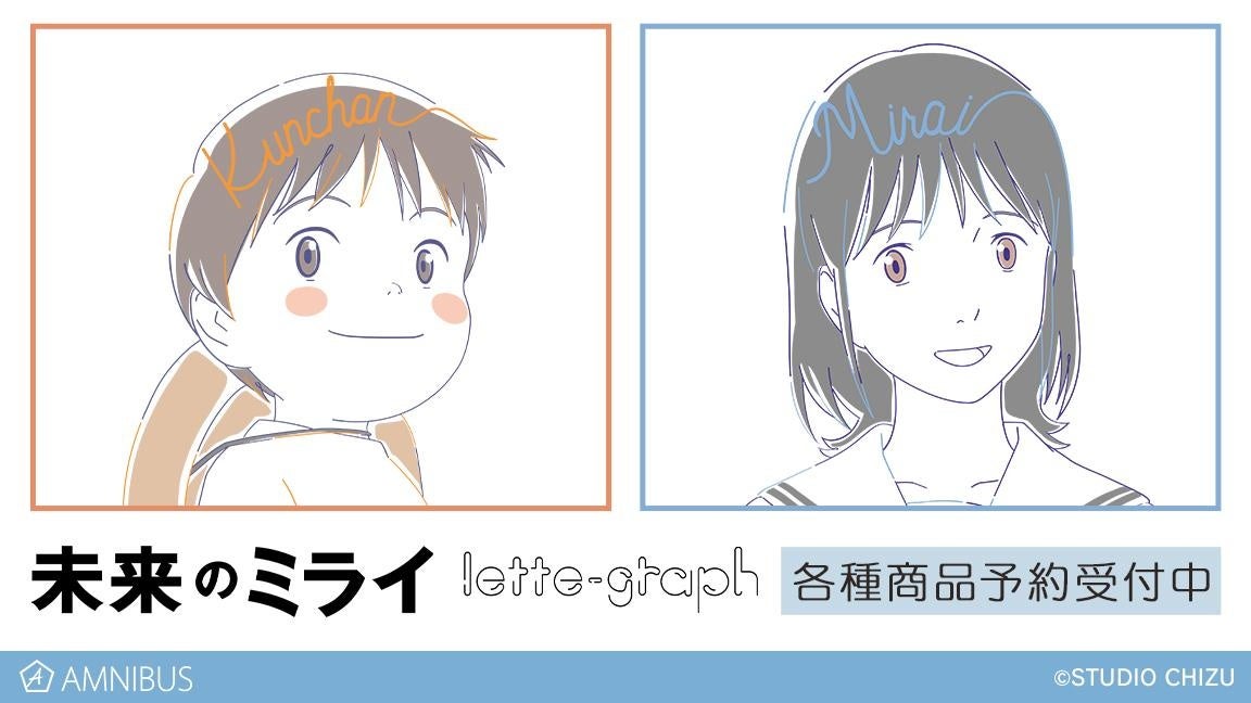 『未来のミライ』のくんちゃんとミライちゃん lette-graph Tシャツ、パーカー、マグカップなどの受注を開始!!アニメ・漫画のオリジナルグッズを販売する「AMNIBUS」にて