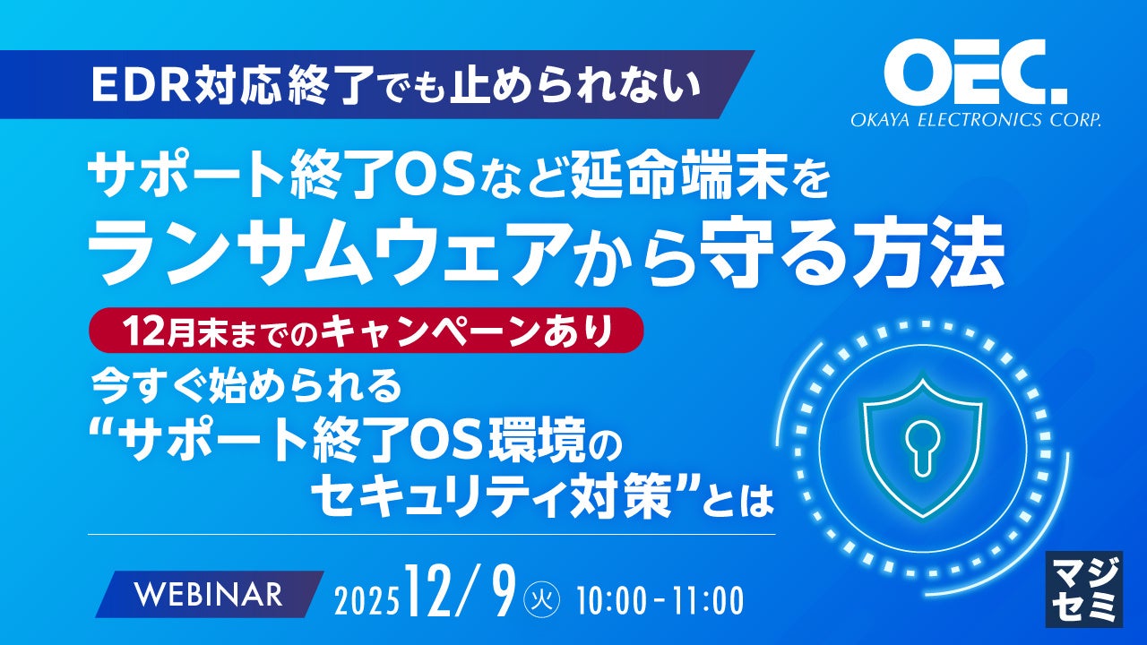 マジセミ株式会社は「【EDR対応終了でも止められない】サポート終了OSなど延命端末をランサムウェアから守る方法」というテーマのウェビナーを開催します。