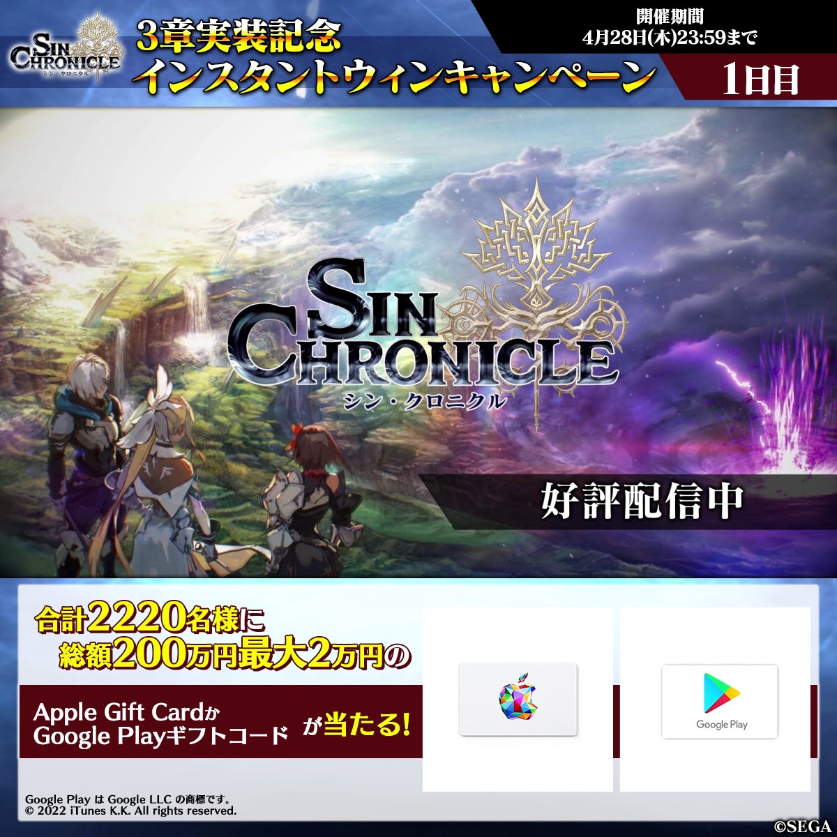 株式会社セガは、200万DLを突破したiOS/Android対応の“あなたが 結末を選ぶRPG”『シン・クロニクル』について、新ストーリーが楽しめる、第3界層の配信を開始したことをお知らせします。